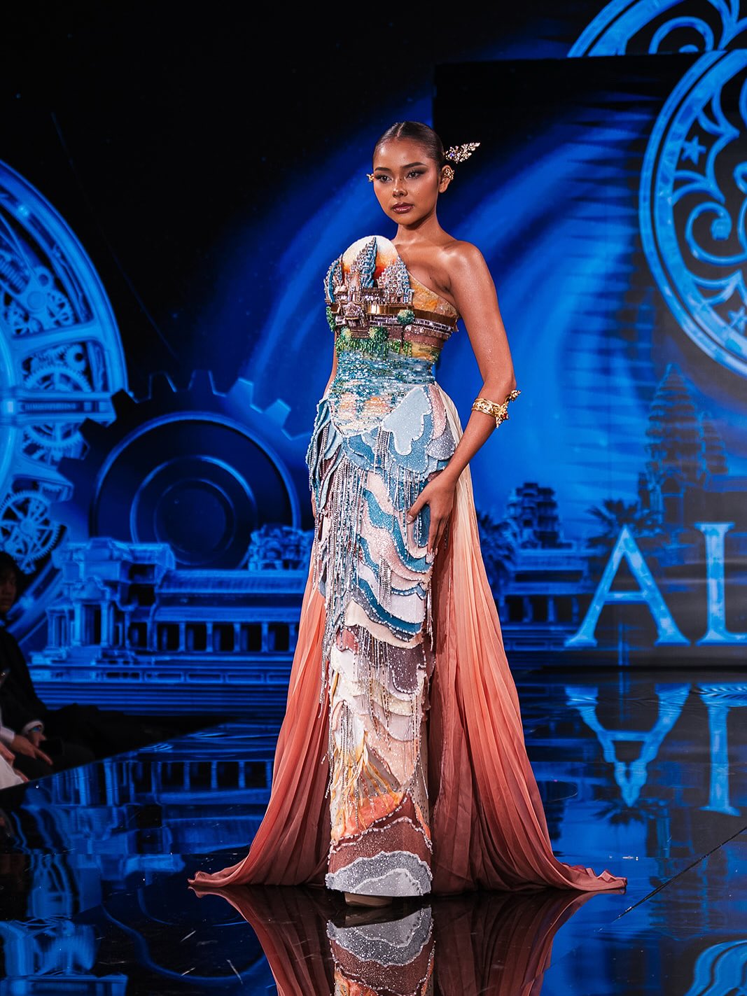 ALmée Couture’s unveiling at NYFW has garnered unwavering support from the Khmer youth. Through the pieces, Cambodians are able to see a reflection of their heritage and culture. Especially in the designs: ‘Dawn of Angkor’, ‘Ancestral Grace’, and ‘Golden Emblem.’ Each dress clearly paints an homage to Khmer culture with the flowing skirts, ancestral motifs, 3D insignias, and nods to Khmer myths and history.