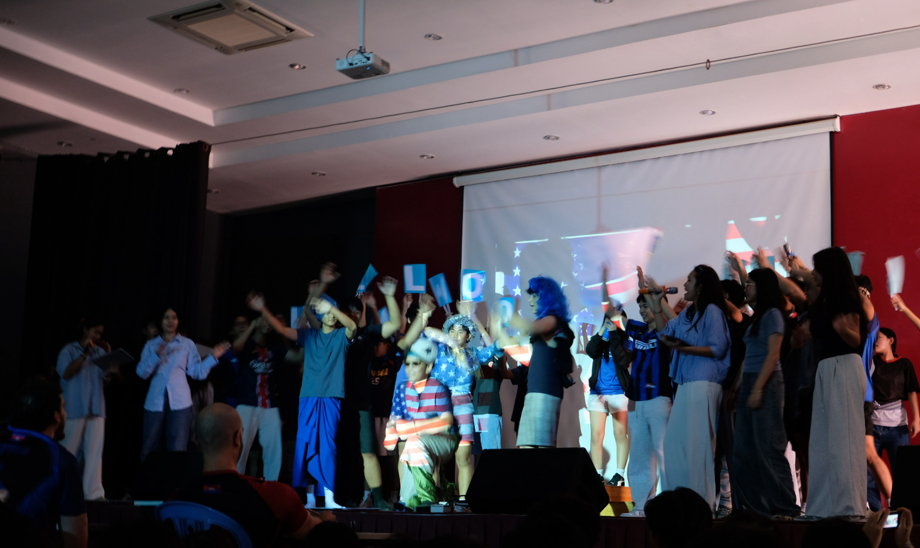 Nobody warned me that when I stepped inside the assembly hall, I and everybody else purchased exclusive tickets to see some of the most thrilling performances. All which included a team of dazzling vocalists, striking fashion icons, and meaningful moments which all culminated in fantastic shows from each house. We were introduced to twisted variations of popular artists and festive celebrations from the debut of Neakreach’s Frontstreet boys, to Voroman’s inflatable Santa Claus, and elves dancing up and down to the song ‘Firework’ by Katy Perry. The high school teams flattered us more with Neakreach who took on a special Chinese Frozen spin on ‘Let it go.’ Hanuman proudly presented the EWIS American flag with our favorite pop artists Jay-Z and Britney Spears.